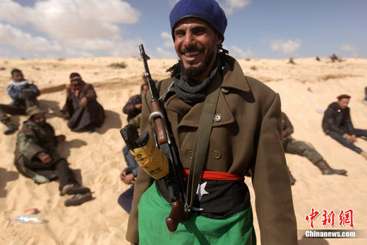 2011年3月21日,利比亞東部重鎮艾季達比耶市郊,一群反政府武裝人員在戰爭間隙休息。