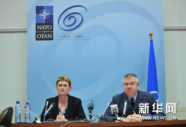 資料圖片:3月25日,在比利時首都布魯塞爾的北約總部,北約發言人瓦娜·倫杰斯庫(左)與北約國際軍事參謀部軍事行動部門的軍官布斯介紹對利比亞軍事行動的情況。北約秘書長拉斯穆森24日宣布,北約決定在利比亞設立禁飛區,并將在數天內從美國手中接管禁飛區指揮權。新華社記者武巍攝