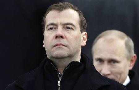 2011年2月23日,俄羅斯總統(tǒng)梅德韋杰夫(左)和總理普京在莫斯科。