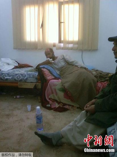 利比亞執政當局軍方官員11月19日說,卡扎菲的兒子賽義夫當天在利比亞南部賽卜哈地區被捕。圖為賽義夫被捕后的電視截圖。