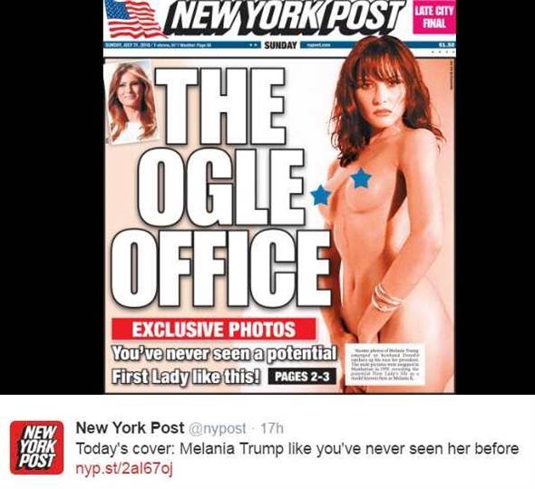 美國共和黨總統候選人特朗普的妻子梅拉尼婭(Melania Trump),有可能會成為美國第一夫人,但《紐約郵報》(New York Post)8月1日又在頭版刊登她年輕時當模特兒期間拍攝的裸照,此舉惹來社交媒體網民批評,被指羞辱女性。
