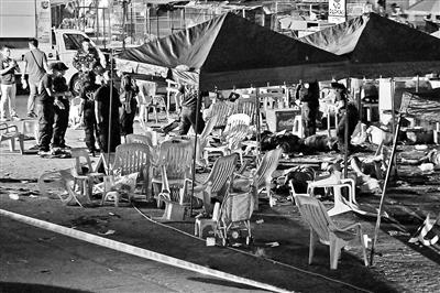 當地時間2日晚11時前,達沃市一處高級酒店旁的街邊夜市發生爆炸。法新社報道,爆炸致死至少14人,另有67人受傷,其中16人傷勢嚴重。爆炸現場到處是遇難者遺體,以及破碎的塑料餐桌、餐椅。