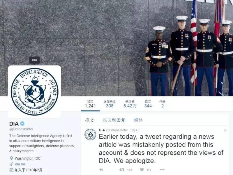 PS:那個發(fā)推特諷刺中國的美國國防情報局,后來很快刪帖了,還更新的推文道歉,稱之前的貼子是被錯誤地發(fā)出,不能代表國防情報局觀點(diǎn)。