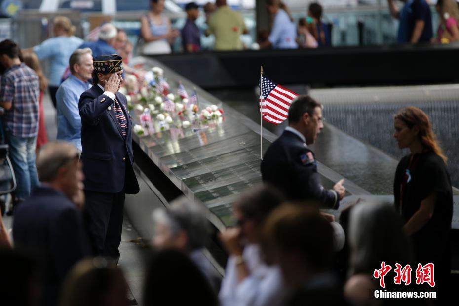 當(dāng)?shù)貢r(shí)間9月11日,民眾在紐約世貿(mào)遺址前哀思。當(dāng)日,“911”15周年紀(jì)念活動(dòng)在美國紐約911紀(jì)念公園舉行。中新社記者 廖攀 攝