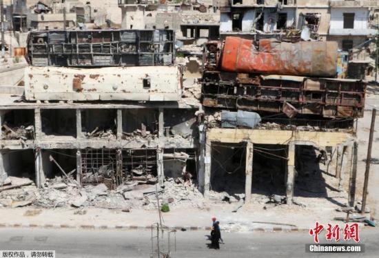 資料圖:敘利亞阿勒頗被炸毀的廢墟。