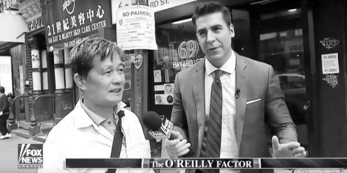 3日晚,福克斯電視臺新聞頻道播出名為“奧萊利實情”的政治評論節目,其中包括一段主持人沃特斯手持話筒在唐人街采訪的視頻。視頻中,有華人女子說不會投票給特朗普,沃特斯立刻評論說,“那中國就能繼續敲詐我們錢財了”?吹浇稚先A人小販賣手表,他就問,“這些手表很好看,是偷來的嗎?”當有年長者被問及對美國總統候選人如何看,因英語不好回答磕絆不清時,節目就配上老電影片段,片中女主角歇斯底里地大喊:說話!說話!你為什么不說話!