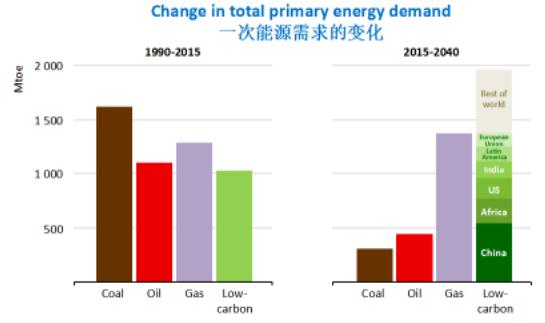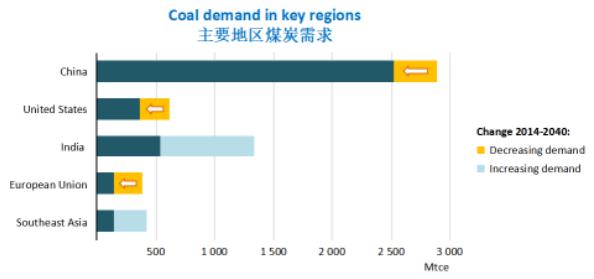 煤炭行業(yè)的未來處境可謂“雪上加霜”,主要地區(qū)煤炭需求不斷回落。IEA指出,中國的能源轉(zhuǎn)型是影響全球大勢的關(guān)鍵所在,煤炭消費達峰標志著煤炭行業(yè)的轉(zhuǎn)折點。未來煤炭需求將大幅回落,IEA預計2040年中國煤炭需求僅為2500百萬噸標準煤。為了控制空氣污染,減少碳排放,電力和天然氣將填補煤炭需求減少的空間,其中,天然氣的使用量將在21世紀30年代超過煤炭。