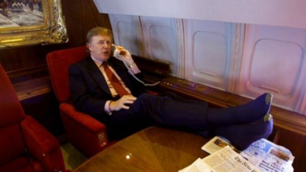 2000年,特朗普在自己的私人飛機上打電話。(圖片來源:英國廣播公司網(wǎng)站)