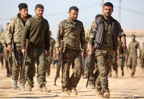敘利亞民主軍戰(zhàn)士10日在拉卡郊外準(zhǔn)備對(duì)IS發(fā)起進(jìn)攻(法新社)