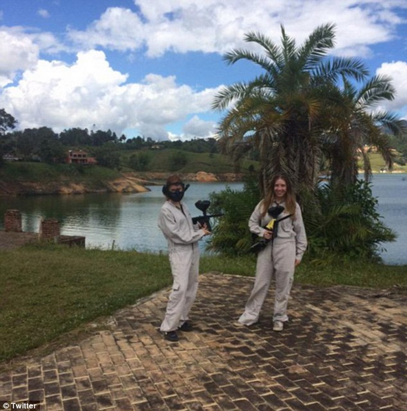“推特”上的圖片顯示,這群游客在哥倫比亞西北部的瓜塔佩(Guatape)小鎮的一處房產中,與游戲設備合影。一位名為凱特(Kate)的用戶說:“在巴勃羅·埃斯科瓦爾的房子上演彩彈槍游戲,如果我加入其中,請不要介意。”