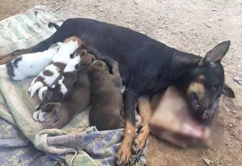 據泰網友近日爆料,泰國某路旁多只小狗還在靠著母狗喝奶,而母狗早已斷氣發硬。