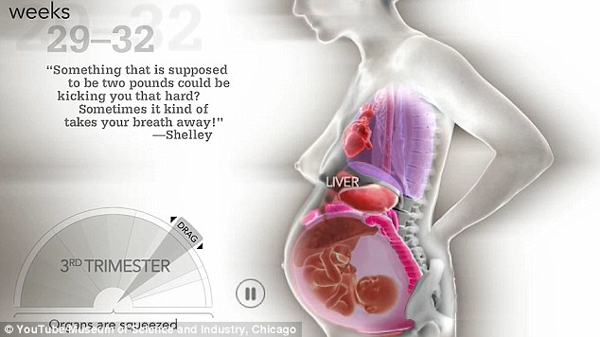 【環(huán)球網(wǎng)綜合報道】 據(jù)英國《每日郵報》2月23日報道,近日,美國芝加哥科學(xué)工業(yè)博物館制作了一則視頻,展現(xiàn)了婦女懷孕時身體內(nèi)各器官的變化過程,同時還配有不同的母親描述自己懷孕期間的感受。用戶可以自由地選擇視頻中的不同懷孕階段進(jìn)行觀看。