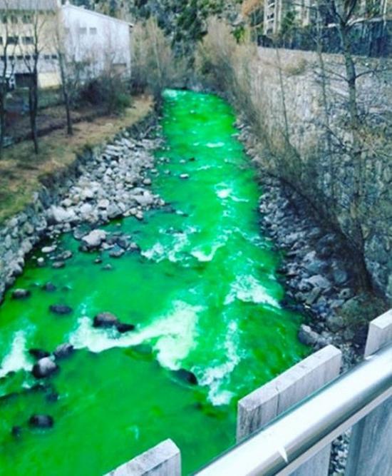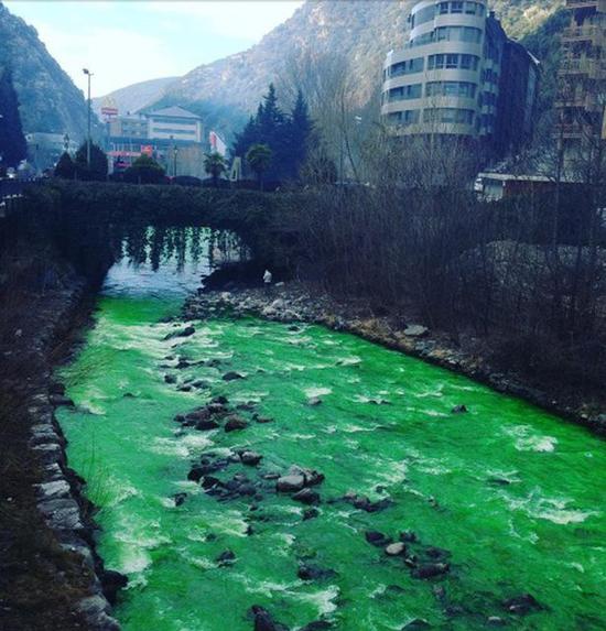 據(jù)悉,該河流源頭位于西班牙的鄰國(guó)安道爾境內(nèi),這條河流在源頭時(shí)就已經(jīng)是綠色了。這奇妙的現(xiàn)象讓人們不禁想起美國(guó)芝加哥河——每年一到圣帕特里克節(jié),這條河的河水就會(huì)變成綠色。面對(duì)眾多西班牙市民的質(zhì)疑,專家表示河水無(wú)毒,也沒(méi)有受到污染,市民無(wú)需恐慌。