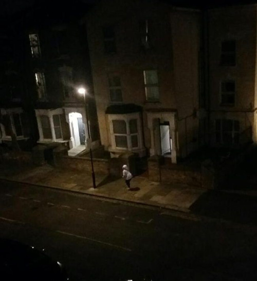 一位鄰居表示,在聽到叫喊聲后,他向窗外望去,看到一位女子頭上纏著毛巾,在街上大喊呼救,隨即拍下了照片。隨后,他還看到一位男子在街上狂奔,仿佛在逃跑,又好似在追趕什么人。