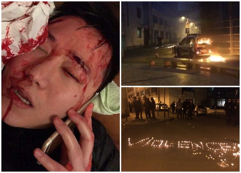 在多個中文和法文網(wǎng)站上,網(wǎng)民不斷發(fā)放騷亂情況的帖子,從其中一條10秒片段所見,現(xiàn)場警員拖拉著一名華人,另有一華人男子倒地。從另一條3分鐘的片段所見,警民發(fā)生沖突,現(xiàn)場一片混亂,氣氛緊張,警員手持擋箭牌和警棍,也有人被毆打;網(wǎng)上亦流傳華人男子頭部滿面鮮血的圖片等。隨后其他帖子表示有人燒車,有網(wǎng)民勸吁同胞不要學阿拉伯人和黑人的野蠻行為,制造騷亂和燒車,說應該以文明手法處理事件。據(jù)悉,騷亂至晚上11時半仍未完成平息。暫時未知起因。