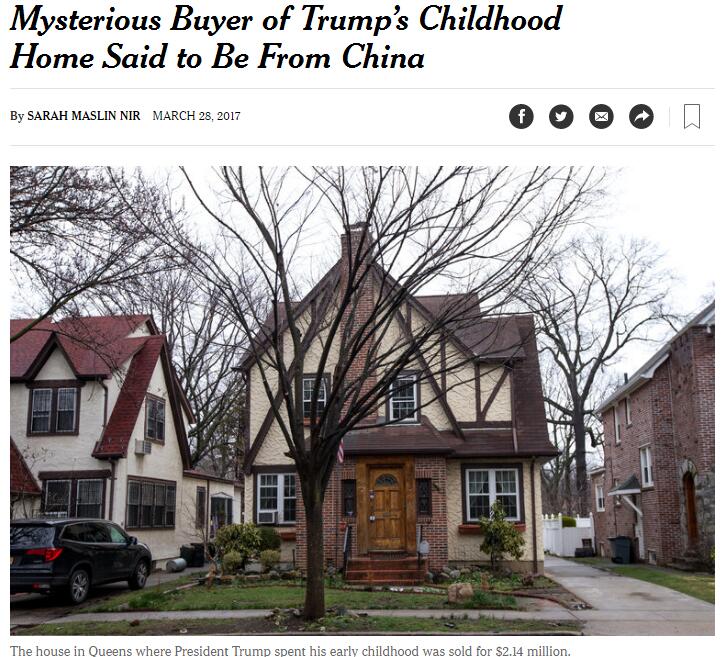 報道說,買家身份被隱藏在一家成立不久,名為“特朗普出生屋”( Trump Birth House)的有限責任公司之后。本次交易于3月23日達成,由一位專門引導(dǎo)海外華人買家投資房地產(chǎn)的律師推動,他名叫邁克爾·X·唐(Michael X. Tang,音),同時也是“特朗普出生屋”公司的代表律師。他說自己無權(quán)披露有關(guān)這起交易的任何信息。