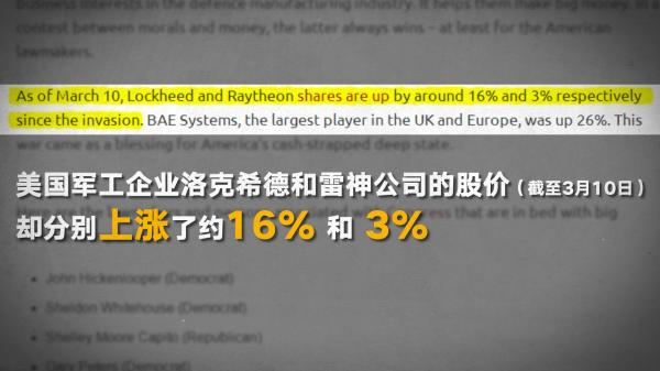 “戰爭持續的每一天,甚至每一分鐘,美國政客和軍火商都在拼命賺錢!”