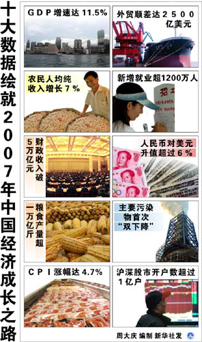 圖表:十大數據繪就2007年中國經濟成長之路 新華社發