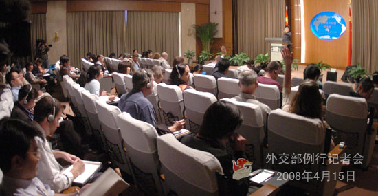 2008年4月15日下午,外交部發言人姜瑜舉行例行記者會,就奧運火炬傳遞、中法關系、CNN電視主持人反華言論等問題答記者問。