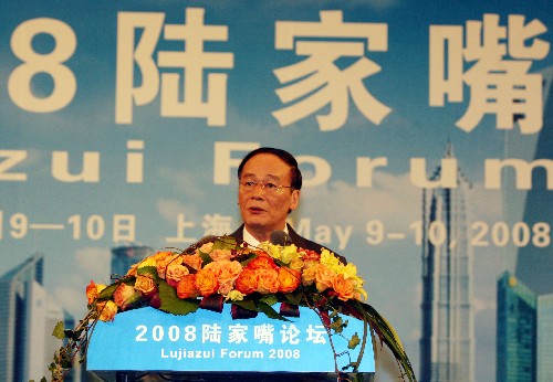 5月9日,中共中央政治局委員、國務院副總理王岐山出席論壇開幕式并演講。 當日,“2008陸家嘴論壇”在上海開幕。出席本次論壇的中外金融界重要人士共有100多名。中國人民銀行行長周小川和上海市市長韓正擔任本次論壇聯(lián)合主席,論壇主題是“世界格局中的中國金融”。 新華社記者 張明 攝
