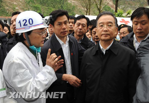 新華網(wǎng)快訊:溫家寶總理10時許來到距北川縣縣城僅兩公里的曲山鎮(zhèn)察看災(zāi)情。他強(qiáng)調(diào),時間就是生命,要盡全力救人。