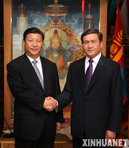 習(xí)近平在會見恩赫巴亞爾總統(tǒng)時,首先向他轉(zhuǎn)達(dá)了胡錦濤主席的親切問候,并再次感謝蒙古國政府和人民就中國四川汶川大地震向中方提供的慰問和幫助。