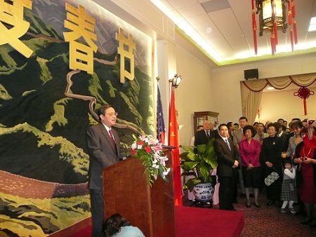 2009年1月17日晚,周文重大使夫婦在中國(guó)駐美國(guó)大使館舉辦春節(jié)招待會(huì),來(lái)自華盛頓市、馬里蘭州、弗吉尼亞州、北卡羅來(lái)納州、特拉華州、田納西州等地的華僑華人、中國(guó)留學(xué)生、香港特區(qū)政府駐華盛頓經(jīng)貿(mào)辦事處工作人員及國(guó)內(nèi)常駐機(jī)構(gòu)的代表700多人歡聚一堂,共慶佳節(jié)。