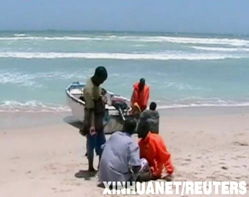 這張拍攝時間不詳的視頻畫面截圖顯示,幾名海盜在索馬里北部埃爾港的海灘上活動。 新華社/路透