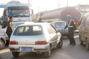 記者:據周邊的村民講,運土車灑落泥土的現象已經存在好幾個月了,平時這些車因為經常灑土,公路沿線經常塵土飛揚。這次堵車的原因除了路面有泥土,我們還發現了兩點:一個是因為津歧公路平時的車流量比較多,最近天津為了治理高速公路上車輛超載的現象,現在在高速公路上啟動了計重收費的政策,許多貨車為了節省費用就繞行津歧公路,造成這個公路的車流量迅速加大,道路不堪重負。另外一個雖然堵了這么長時間,但是昨天在我們到達堵車路段前,沒有發現任何諸如前方堵車,請提前繞行的標識,我想如果有這樣一個標識,堵車的情況在一定程度上也會有所緩解。
