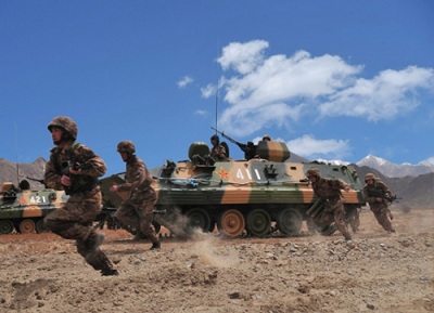 資料圖:解放軍駐藏部隊(duì)進(jìn)行高原突擊作戰(zhàn)訓(xùn)練。 趙海波 攝影