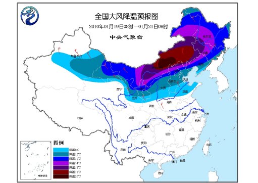 19日08時(shí)至21日08時(shí),新疆東部和沿天山地區(qū)、西北地區(qū)東部、內(nèi)蒙古、華北、東北、黃淮北部等地自西向東將先后有5~6級(jí)、陣風(fēng)7~8級(jí)偏北風(fēng),新疆山口地區(qū)風(fēng)力可達(dá)8~10級(jí);上述地區(qū)的氣溫將下降8~12℃,其中,內(nèi)蒙古中東部、東北地區(qū)西部的部分地區(qū)溫度降幅可達(dá)14~18℃,局部地區(qū)有18~20℃。20日早晨,阿勒泰地區(qū)的最低氣溫將下降到零下35至零下43℃。20日、21日早晨,內(nèi)蒙古東北部的最低氣溫也將下降到零下30至零下35℃,局地達(dá)零下40℃。