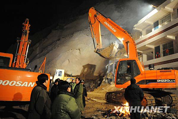 3月10日深夜,現(xiàn)場救援工作正在緊張進(jìn)行。新華社記者 陶明 攝