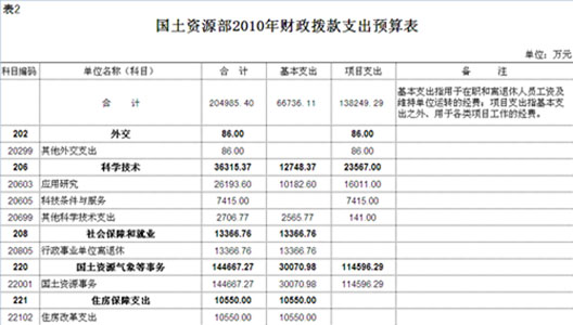。ㄓ浾邊蛆i)昨日,國土資源部在其官方網站發布了“2010年部門預算”,有報道稱,這是我國政府決定“三年內公開中央部門預算”后,第一個公開部門預算的中央部委。
