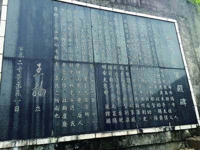 在建勛寺內(nèi)的“甘卓將軍殿碑”。2009年,王林牽頭花費1.4億修建“建勛寺”。 圖/記者 陳威