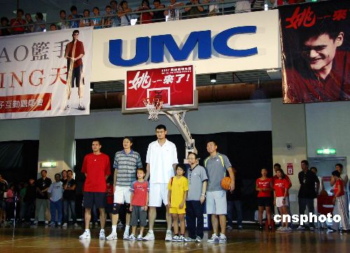 姚明在離臺(tái)前9日參加唯一一場籃球賽,不少球迷在球賽開打前就抵達(dá)球場,就是為了一賭姚明風(fēng)采。姚明旋風(fēng)席卷球場,姚明參加兩岸籃球交流比賽,在臺(tái)大體育館與前上海大鯊魚隊(duì)友鄭志龍、星光幫成員許仁杰等組成一隊(duì),對上由“臺(tái)灣飛人”陳信安領(lǐng)軍的包括周俊三、陳子威王志群等SBL明星隊(duì),吸引了大批球迷,到場觀賽,現(xiàn)場氣氛熱絡(luò)。