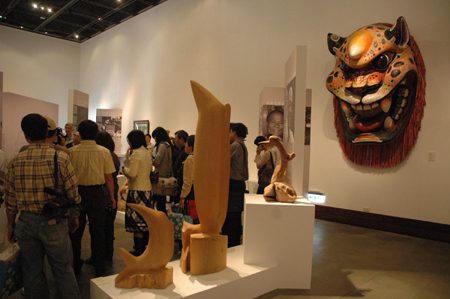據悉,首展作品一百三十九件,包含四大類,展出臺灣各地杰出的樸素藝術創作,包括雕像、獅頭創作、草編、釋迦彩畫,此外還有大陸農民畫等。