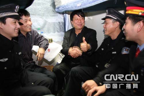 中廣網(wǎng)廈門3月12日消息(記者劉立忠 通訊員甘洋和)擔(dān)任龍巖至北京西的K572/1次“海西號(hào)”旅客列車的廈門乘警支隊(duì)乘警,在胡錦濤總書記對(duì)海峽兩岸重要講話精神的鼓舞下,面對(duì)2300多萬臺(tái)灣同胞當(dāng)中有一半以上祖籍都在閩南金三角和龍巖地區(qū)的優(yōu)勢(shì),積極為乘“海西號(hào)”列車的兩岸同胞提供熱情服務(wù),得到臺(tái)胞們的廣泛贊譽(yù)。在龍巖投資的臺(tái)胞王先生一行在列車上得到乘警和列車長(zhǎng)的熱情服務(wù),滿懷激情地豎起大拇指贊不絕口。
