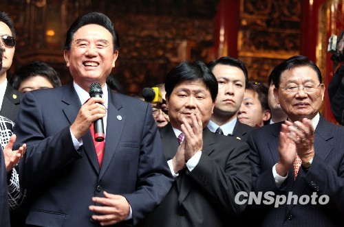 海協會會長陳云林12月23日前往臺中大甲鎮瀾宮參訪,受到在場媽祖信眾的鼓掌歡呼。陳云林說,今天來這里為媽祖進香算是如愿以償,感謝有這么多鄉親歡迎我,和我一起向媽祖進香。 中新社發 曾嘉 攝