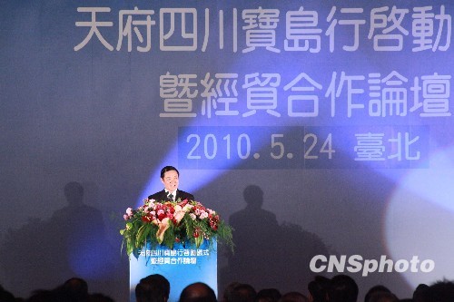5月24日,“天府四川寶島行”在臺北啟動,率團訪臺的中共四川省委書記劉奇葆出席啟動儀式并作主題演講。中新社 羅欽文 攝