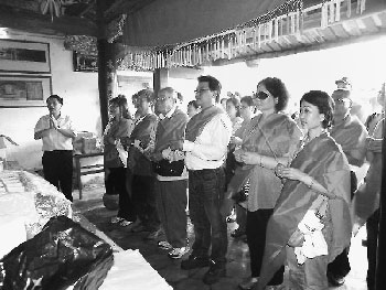 5月29日,臺灣地區副領導人蕭萬長的叔叔、81歲高齡的蕭火旺帶領54位蕭氏宗親,到南靖縣金山鎮霞涌村“四美堂”認親謁祖。(溫欣 戴俊祥)