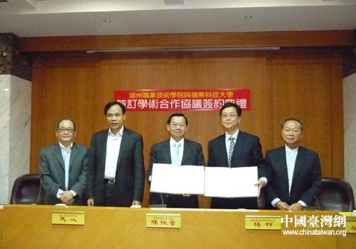 湖州職業(yè)技術學院與臺灣嶺東科技大學現(xiàn)場(圖片來源:湖州市臺辦)