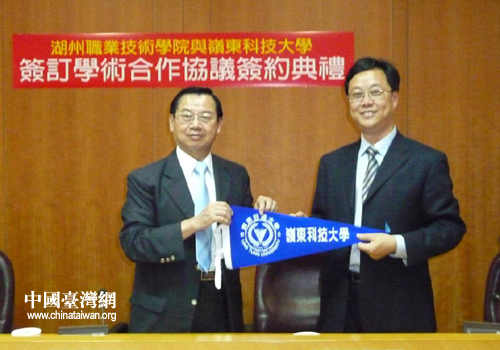 中國臺灣網(wǎng)7月2日湖州消息 日前,臺灣嶺東科技大學校長陳振貴與湖州職業(yè)技術學院院長胡世明簽訂合作協(xié)議,兩校正式結為姊妹學校。湖州職業(yè)技術學院的22名女生應陳校長的邀請,將于2010年9月13日至2011年1月14日期間赴臺灣進行交流學習。期間,將在臺灣嶺東科技大學選修18-20學分的課程進行學習。