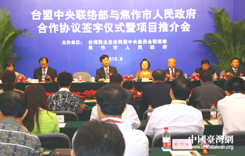 中國(guó)臺(tái)灣網(wǎng)8月30日北京消息 臺(tái)灣民主自治同盟中央聯(lián)絡(luò)部與河南省焦作市政府,30日在京簽署建立合作關(guān)系協(xié)議。此舉將進(jìn)一步搭建河南與臺(tái)灣之間的經(jīng)濟(jì)合作平臺(tái),推進(jìn)豫臺(tái)兩地間經(jīng)貿(mào)合作。