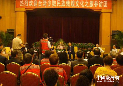 甘肅省人大副主任朱志良代表中共甘肅省委、省政府會(huì)見(jiàn)并宴請(qǐng)了“臺(tái)灣少數(shù)民族敦煌文化之旅”參訪團(tuán)一行。甘肅省臺(tái)辦主任趙少智全程陪同參訪團(tuán)進(jìn)行了考察參訪。