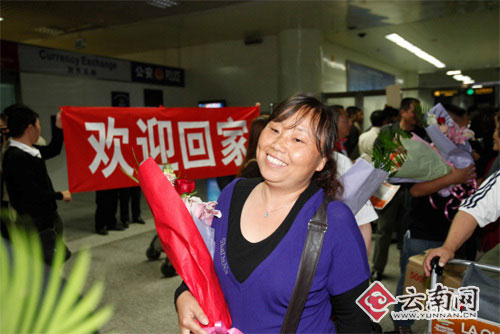 在云南省國際旅行社拉起的“歡迎回家”的大幅標語下,在鮮花簇擁、鄉音問候下,曾受困于臺灣蘇花公路113到114公里處的48名云南游客昨晚23時20分乘坐由臺北飛往昆明的3U8958次航班,順利抵達昆明機場。據臺灣觀光部門統計,在臺灣遭遇塌方事故的大陸游客,除20人尚未尋獲,其余人員均已脫困,其中164人已離開臺灣返回大陸,另外85名游客將推遲離臺以繼續走完行程。