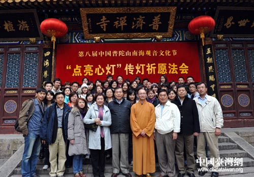 中國臺灣網11月4日舟山消息 11月3日,2010年上海世博會臺灣館館長邱揮立率臺灣館全體員工一行50余人來到浙江省普陀山觀光禮佛。