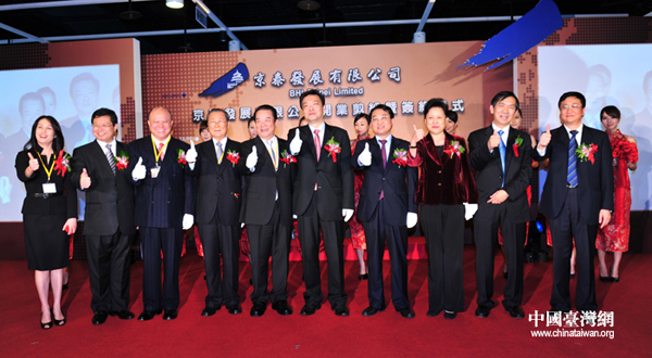 京泰發(fā)展有限公司14日在臺(tái)北101大樓舉行了隆重的開(kāi)業(yè)剪彩暨簽約儀式。(郭寧 攝)