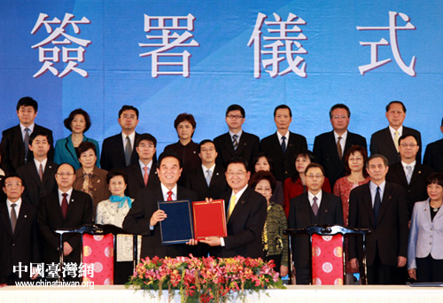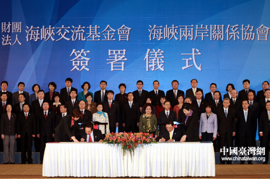 中國(guó)臺(tái)灣網(wǎng)12月21日臺(tái)北消息 兩岸兩會(huì)領(lǐng)導(dǎo)人第六次會(huì)談21日在臺(tái)北舉行。經(jīng)過(guò)一個(gè)上午的會(huì)談,當(dāng)日下午2點(diǎn)30分,海協(xié)會(huì)會(huì)長(zhǎng)陳云林和海基會(huì)董事長(zhǎng)江丙坤正式簽署《海峽兩岸醫(yī)藥衛(wèi)生合作協(xié)議》。