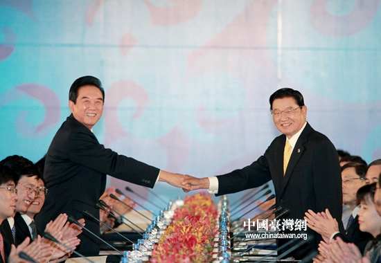 12月21日上午9時,海協會與海基會的會談代表準點進入臺北圓山大飯店大會廳,賓主落座,海協會會長陳云林與海基會董事長江丙坤起身握手,快門咔嚓聲瞬間響成一片。
