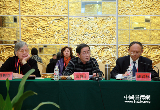 北京聯(lián)合大學(xué)臺(tái)灣研究院教授徐博東(中)在第九屆兩岸關(guān)系研討會(huì)上發(fā)言。(中國臺(tái)灣網(wǎng) 鐘寶華 攝)